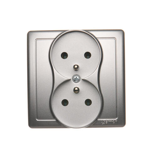 Gniazdo wtyczkowe podwójne bez uziemienia, satynowy, metalizowany, 16A