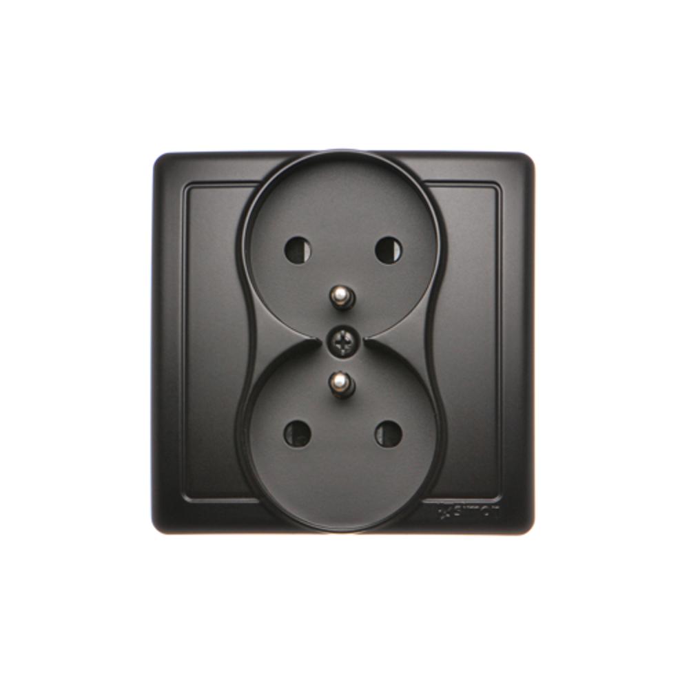 Gniazdo wtyczkowe podwójne bez uziemienia z przesłonami torów prądowych, czarny mat, 16A