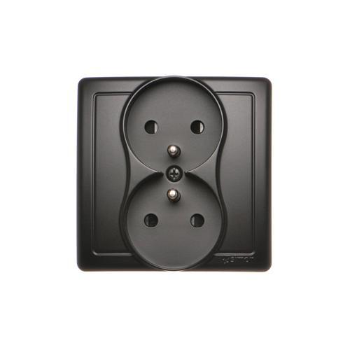 Gniazdo wtyczkowe podwójne bez uziemienia, czarny mat, 16A