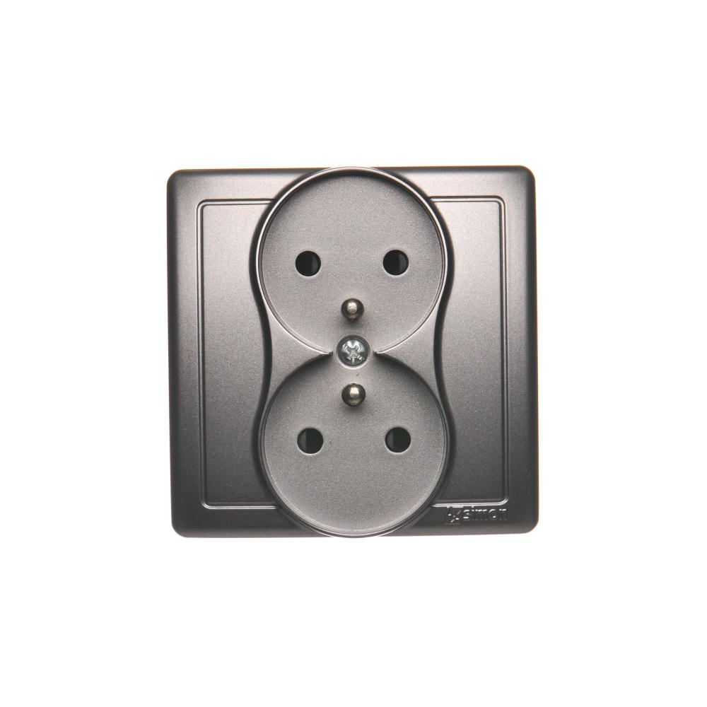 Gniazdo wtyczkowe podwójne bez uziemienia, satynowy, metalizowany, 16A