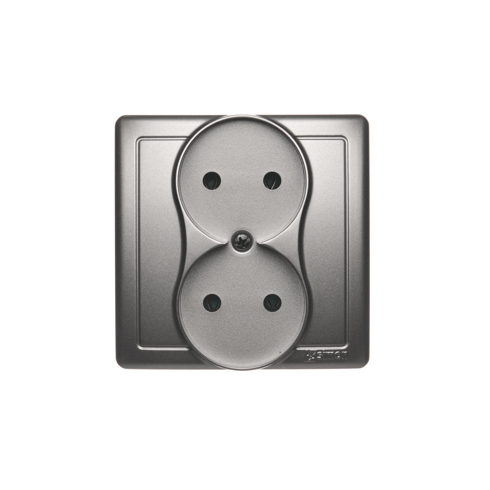Gniazdo wtyczkowe podwójne bez uziemienia, satynowy, metalizowany, 16A