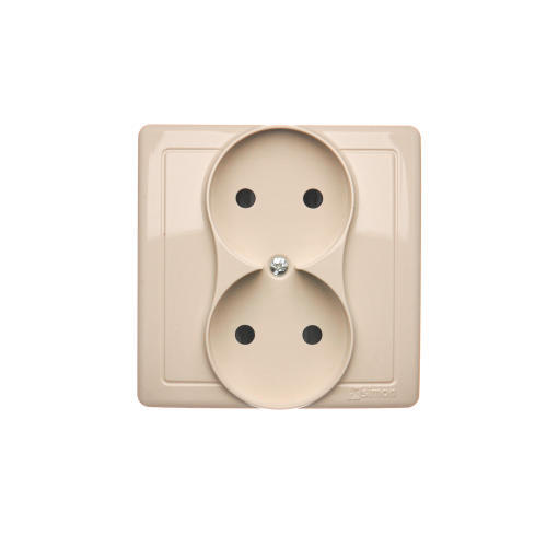 Gniazdo wtyczkowe podwójne bez uziemienia, beżowy, 16A