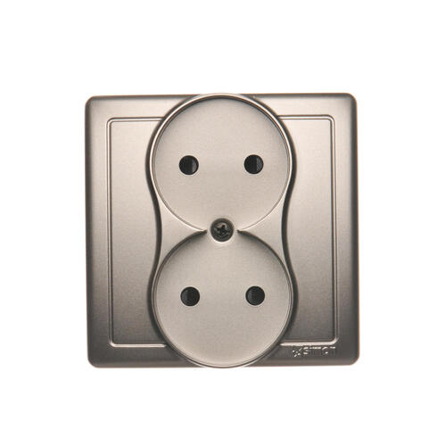 Gniazdo wtyczkowe podwójne bez uziemienia, satynowy, metalizowany, 16A