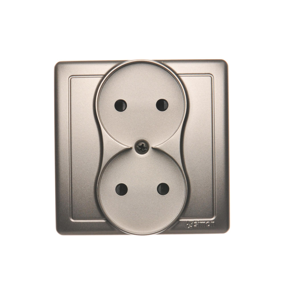 Gniazdo wtyczkowe podwójne bez uziemienia z przesłonami torów prądowych, satynowy, metalizowany, 16A