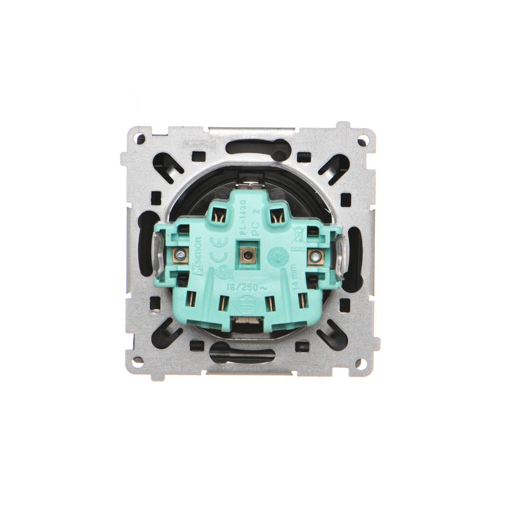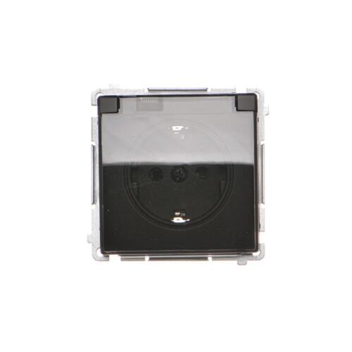 Gniazdo wtyczkowe pojedyncze do wersji IP44 z uziemieniem typu Schuko z przesłonami torów prądowych - bez uszczelki ramki - klapka w kolorze transparentnym, satynowy, metalizowany, 16A