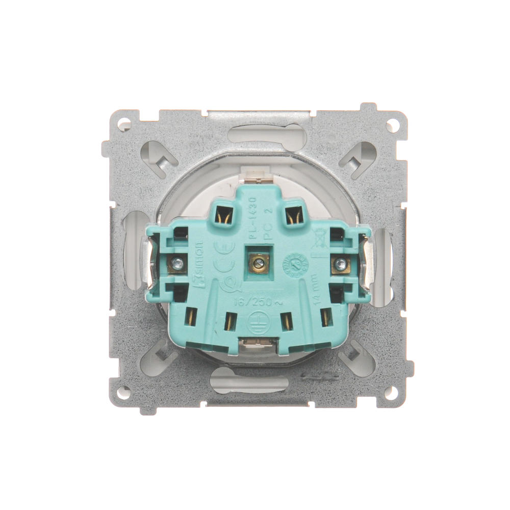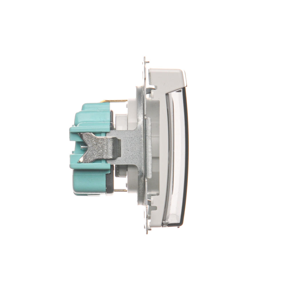 - Nazwa produktu/Rodzaj: gniazdo wtyczkowe pojedyncze do wersji IP44 z uziemieniem typu Schuko z przesłonami torów prądowych - bez uszczelki ramki - klapka w kolorze transparentnym