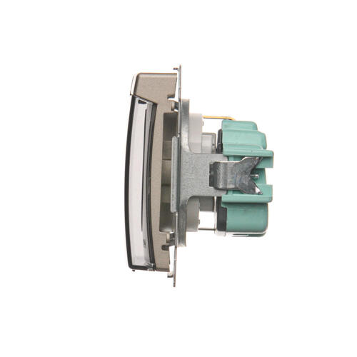 Gniazdo wtyczkowe pojedyncze do wersji IP44 z uziemieniem typu Schuko - bez uszczelki ramki - klapka w kolorze transparentnym, srebrny mat, metalizowany, 16A