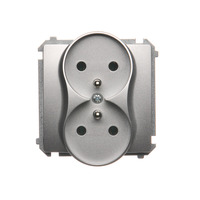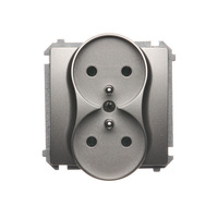 Gniazdo wtyczkowe podwójne z uziemieniem, satynowy, metalizowany, 16A