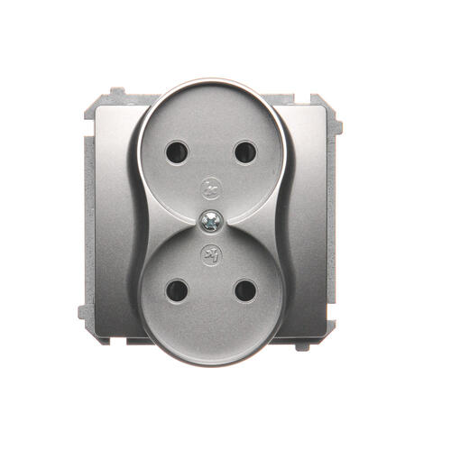 Gniazdo wtyczkowe podwójne bez uziemienia z przesłonami torów prądowych, satynowy, metalizowany, 16A