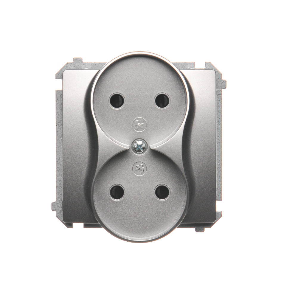 Gniazdo wtyczkowe podwójne bez uziemienia, satynowy, metalizowany, 16A