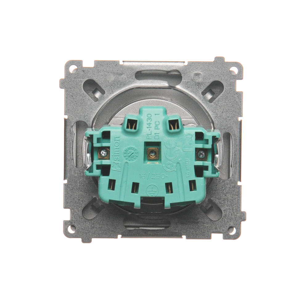 Gniazdo wtyczkowe pojedyncze bez uziemienia z przesłonami torów prądowych, satynowy, metalizowany, 16A