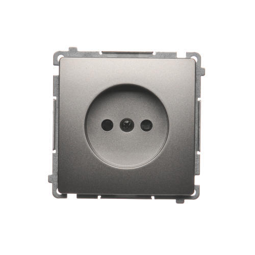Gniazdo wtyczkowe pojedyncze bez uziemienia z przesłonami torów prądowych, srebrny mat, metalizowany, 16A