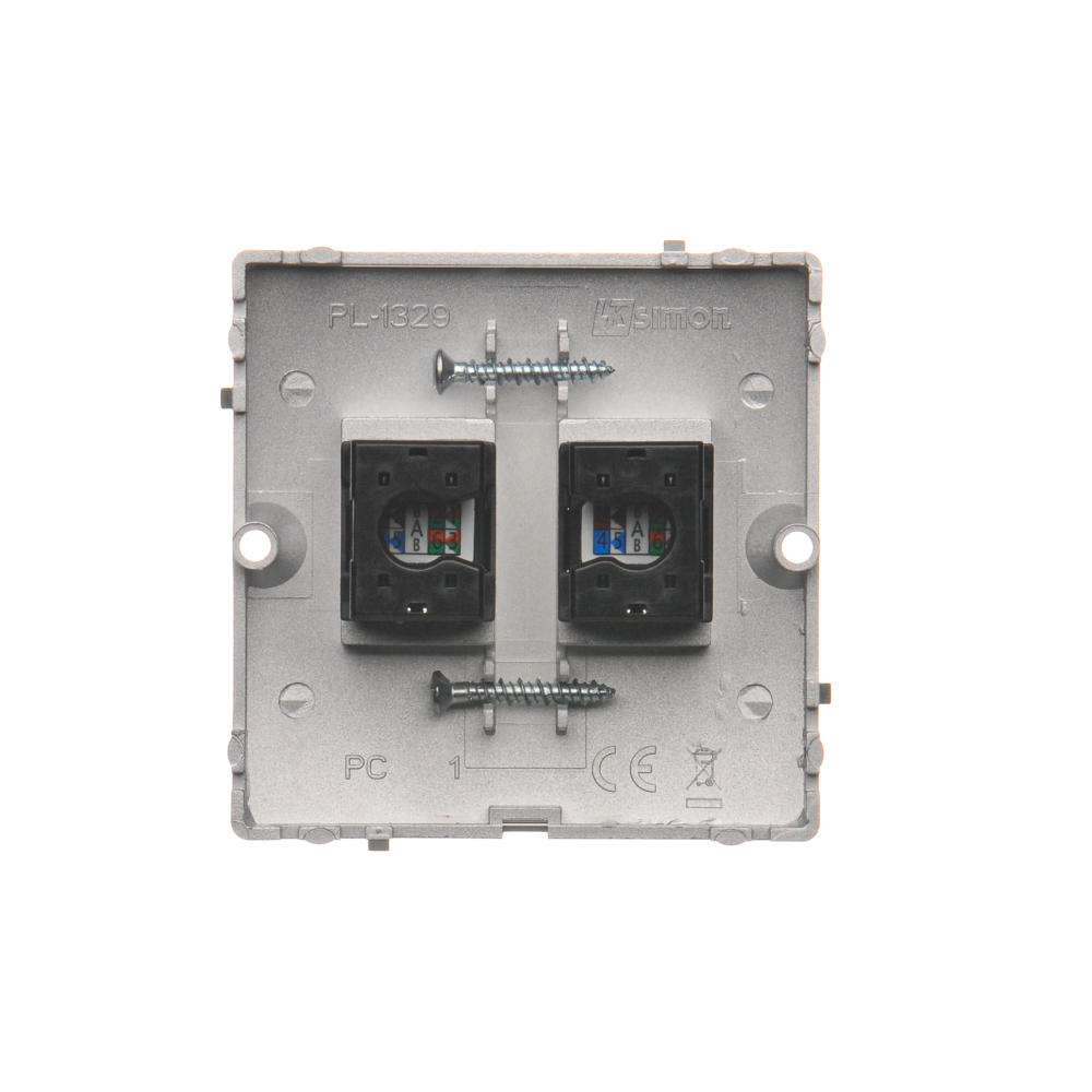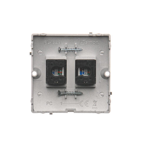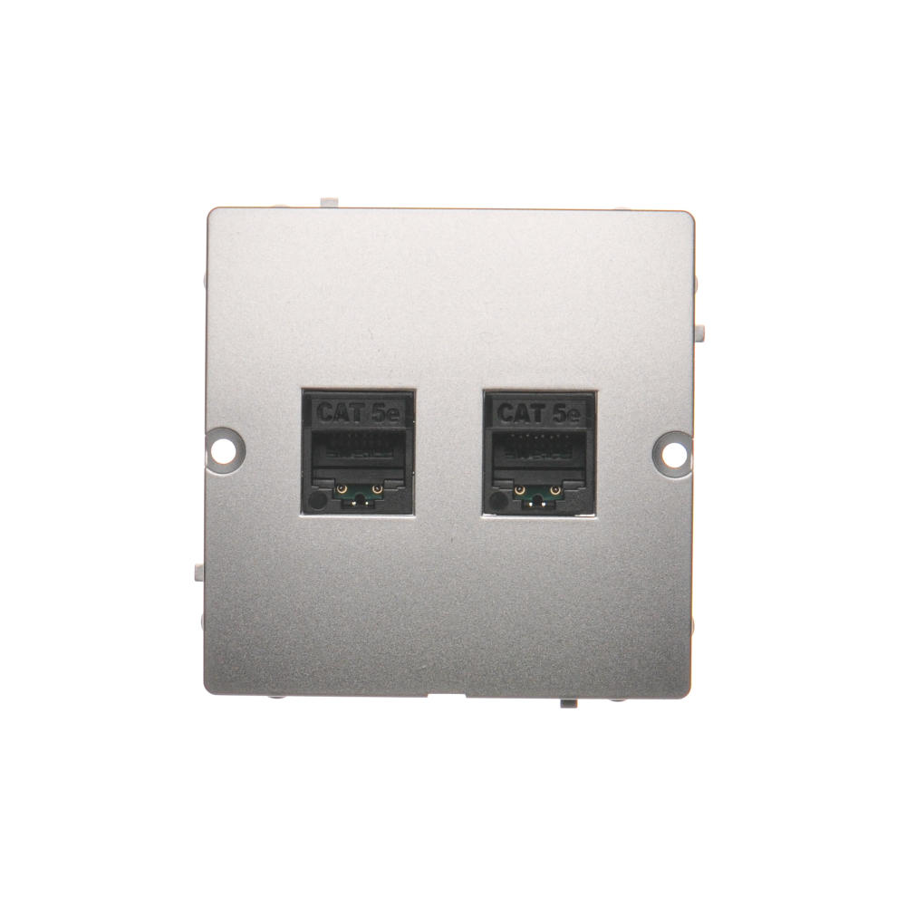 Gniazdo komputerowe podwójne RJ45 kategoria 5e, (moduł), srebrny mat, metalizowany