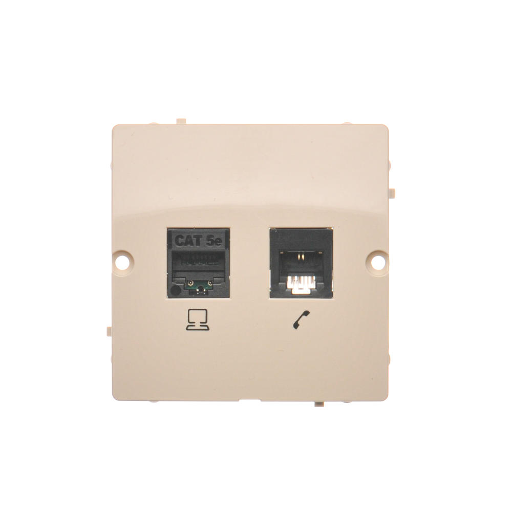 Gniazdo komputerowe RJ45 kategoria 5e + telefoniczne RJ11, (moduł), beżowy