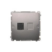 Gniazdo komputerowe pojedyncze RJ45 kategoria 6, z przesłoną przeciwkurzową, (moduł), srebrny mat, metalizowany