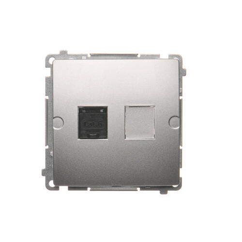 Gniazdo komputerowe pojedyncze RJ45 kategoria 6, z przesłoną przeciwkurzową, (moduł), inox, metalizowany