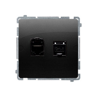 Gniazdo komputerowe podwójne RJ45 kategoria 6, z przesłoną przeciwkurzową, (moduł), czarny mat