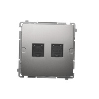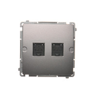Gniazdo komputerowe podwójne RJ45 kategoria 6, z przesłoną przeciwkurzową, (moduł), srebrny mat, metalizowany