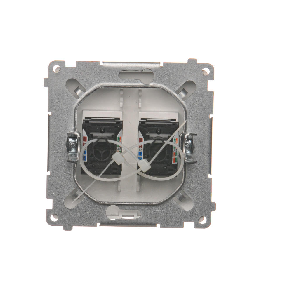 Gniazdo komputerowe podwójne RJ45 kategoria 6, z przesłoną przeciwkurzową, (moduł), satynowy, metalizowany