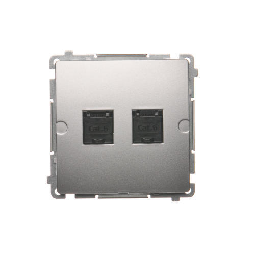 Gniazdo komputerowe podwójne RJ45 kategoria 6, z przesłoną przeciwkurzową, (moduł), srebrny mat, metalizowany