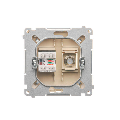 Gniazdo antenowe typu „F” + komputerowe RJ45 kat.6, beżowy