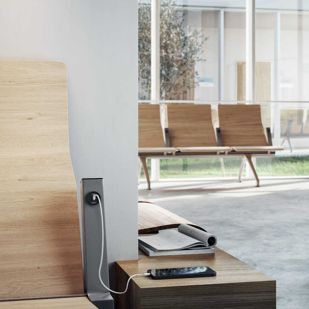 Stworzony, aby tchnąć energię w otwarte przestrzenie biurowe, strefy współpracy, sale spotkań i boksy, oferując punkty USB o zróżnicowanych funkcjach.