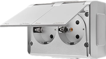 Utanpåliggande produktserie erbjuder IP 54 spridningsskydd och uttag. Serien är avsedd för arbets- / utomhusområden. Fuktighet är inte ett problem för denna serie, och därför används produkterna ofta under svåra förhållanden (bad, garage, trädgårdsmöbler, etc.) där de fungerar perfekt.
