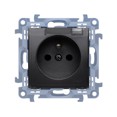 Jednoduchá zásuvka s krytím IP44 s clonkami - bez tesnenia - klapka vo farbe krytu, 16A, čierny matný