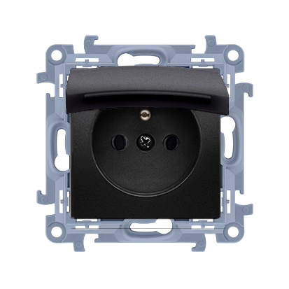 Jednoduchá zásuvka s krytím IP44 s clonkami - bez tesnenia - klapka vo farbe krytu, 16A, čierny matný