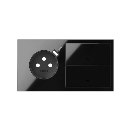 Dostupné len ako jednotlivé diely, Nahradený za:: 10000920-039 + 3x 10000201-039, Panel 2-násobný: 1 zásuvka s 1 integrovanou USB C nabíjačkou + 2 schodiskové spínače, Simon 100, IP20