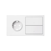 Dostupné len ako jednotlivé diely, Nahradený za:: 10000432-039 + 10000920-039 + 2x 10000201-039, Zostava 2-násobná: 1 zásuvka + 2 schodiskové spínače, Simon 100, IP20, 10AX, 16A
