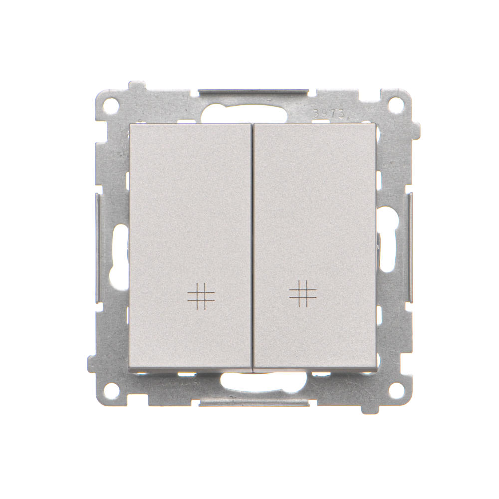 Dvojitý krížový prepínač, radenie č. 7+7 (prístroj) bez piktogramu, 10AX, hliník matný