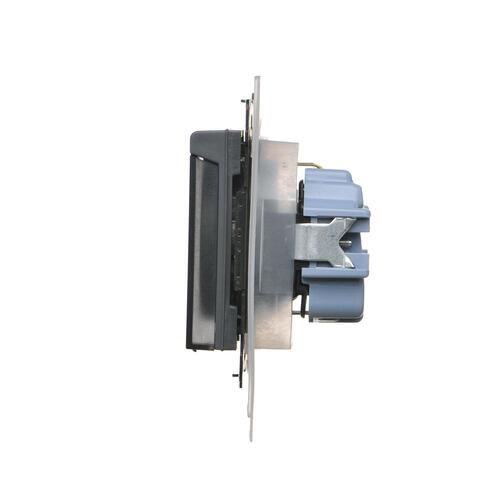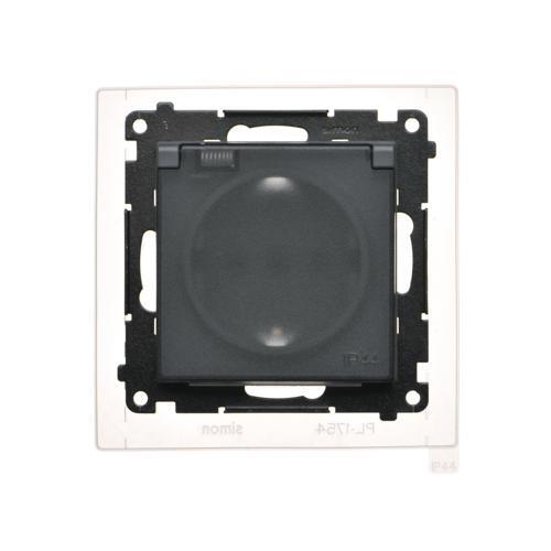 Jednotná kolíková zásuvka Schuko pre verziu IP44 s uzemnením typu - s tesnenia rámčeku - klapka vo transparentné farbe, prístroj s krytom, 16A, pružinové svorky, grafit matný