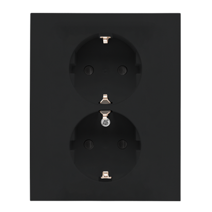 Dvojitá zásuvka Schuko s clonkami, kompletný výrobok, 16A, skrutkové svorky, čierny matný