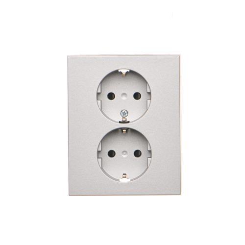 Dvojitá zásuvka Schuko s clonkami, kompletný výrobok, 16A, skrutkové svorky, hliník matný
