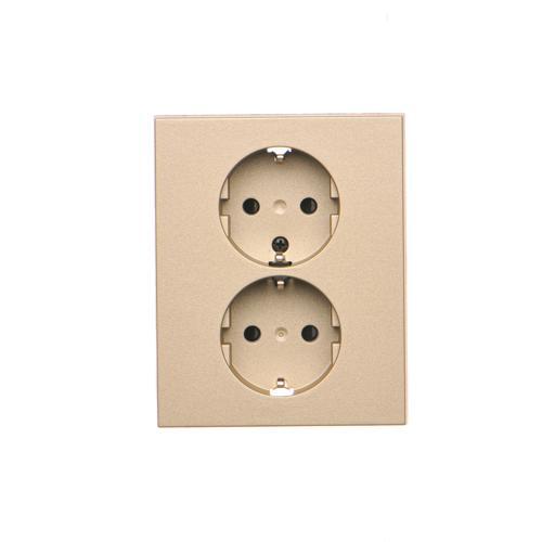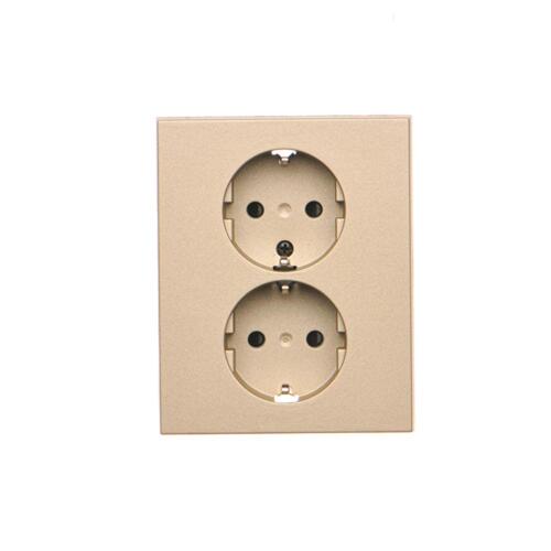 Dvojitá zásuvka Schuko s clonkami, kompletný výrobok, 16A, skrutkové svorky, šampanské matné