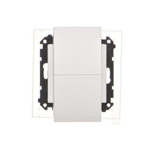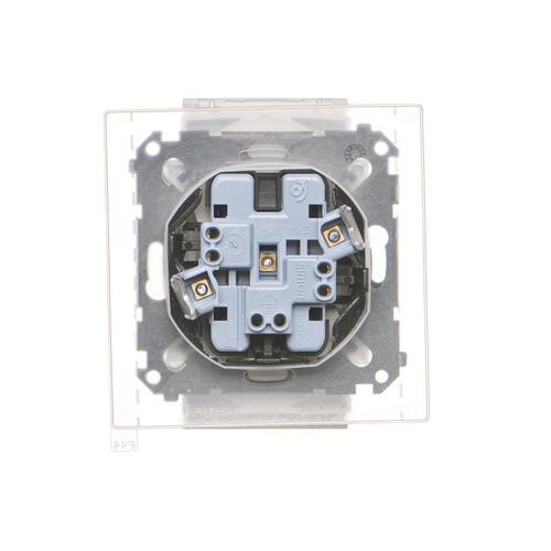 Zásuvka dvojitá pre verziu IP44 - s tesnením - transparentná klapka, prístroj s krytom, 16A, pružinové svorky, biela matná