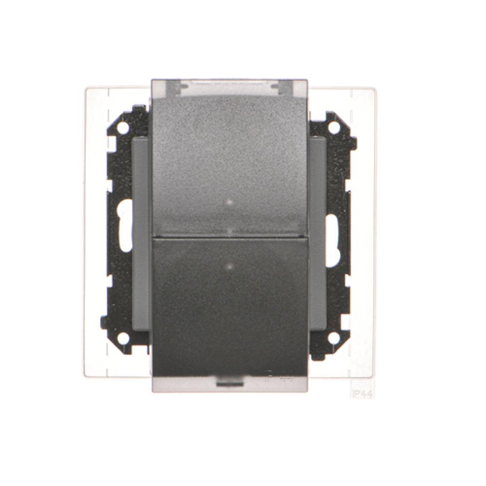 Zásuvka dvojitá pre verziu IP44 - s tesnením - transparentná klapka, prístroj s krytom, 16A, pružinové svorky, grafit matný