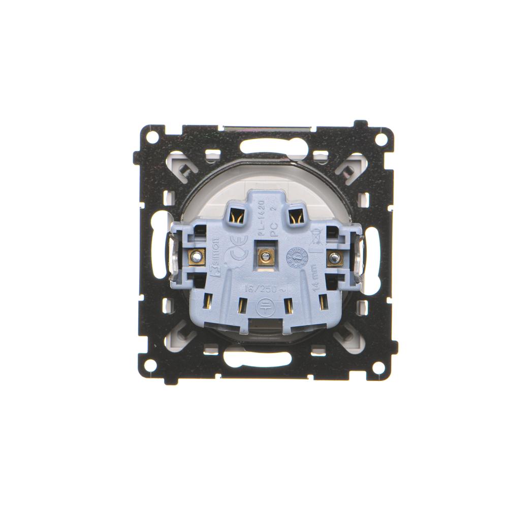 Jedno zásuvka s uzemnením s clonkami, prístroj s krytom, 16A, pružinové svorky, biela matná