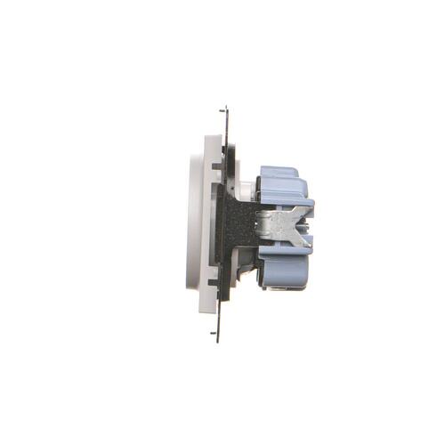 Jedno zásuvka bez uzemnenia s clonkami, prístroj s krytom, 16A, pružinové svorky, biela matná