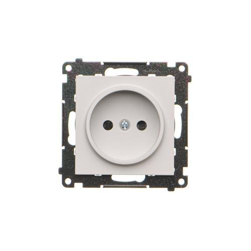 Jedno zásuvka bez uzemnenia s clonkami, prístroj s krytom, 16A, pružinové svorky, svetlosivá matná