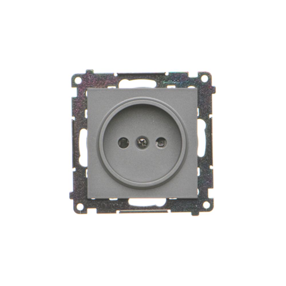 Jedno zásuvka bez uzemnenia s clonkami, prístroj s krytom, 16A, pružinové svorky, hliník matný