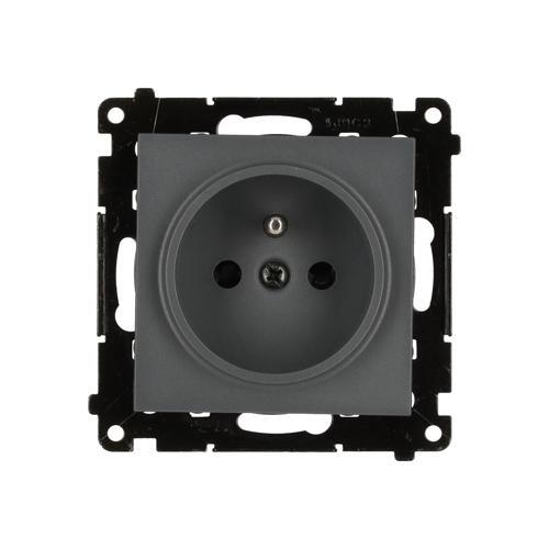 Jedno zásuvka bez uzemnenia s clonkami, prístroj s krytom, 16A, pružinové svorky, grafit matný