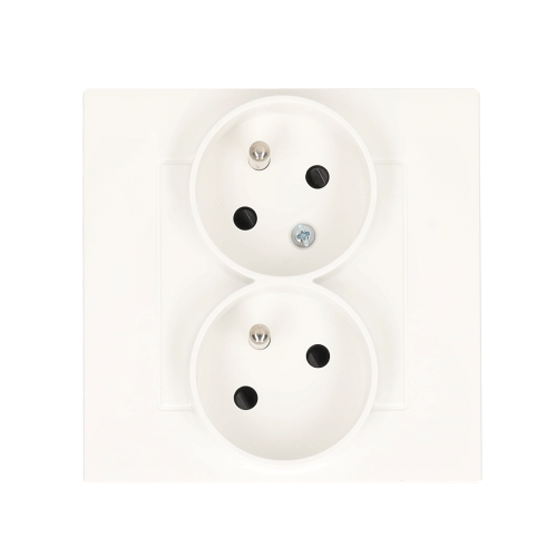 Dvojitá zásuvka bez uzemnenia s clonkami, prístroj s krytom, 16A, pružinové svorky, biela matná