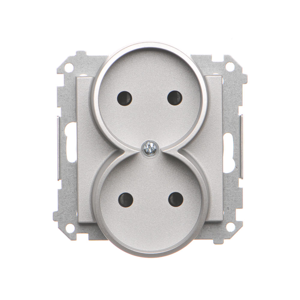 Dvojitá zásuvka bez uzemnenia s clonkami, prístroj s krytom, 16A, pružinové svorky, hliník matný