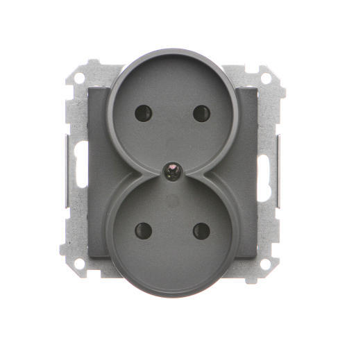 Dvojitá zásuvka bez uzemnenia s clonkami, prístroj s krytom, 16A, pružinové svorky, grafit matný