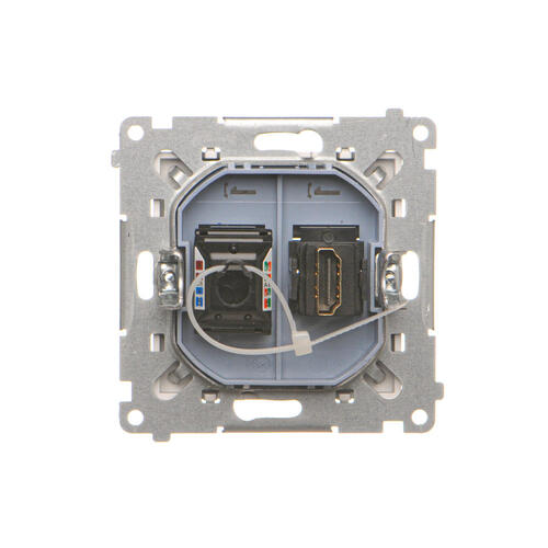Zásuvka HDMI 2.1 + počítačová RJ45 kat. 6, prístroj s krytom, hliník matný, HDMI štandard: HDMI 2.1
