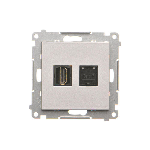Zásuvka HDMI + počítačová RJ45 kat. 6, prístroj s krytom, hliník matný