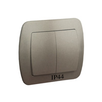STIAHNUTÝ Z PONUKY, dvojitý striedavý prepínač s krytím IP44, (kompletný výrobok), Simon Akord, IP44, 10AX, saténový, metalizovaný