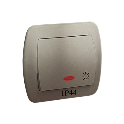 STIAHNUTÝ Z PONUKY, tlačidlo "svetlo" č.1/0 vo verzii IP44, (kompletný výrobok), Simon Akord, IP44, 10AX, saténový, metalizovaný